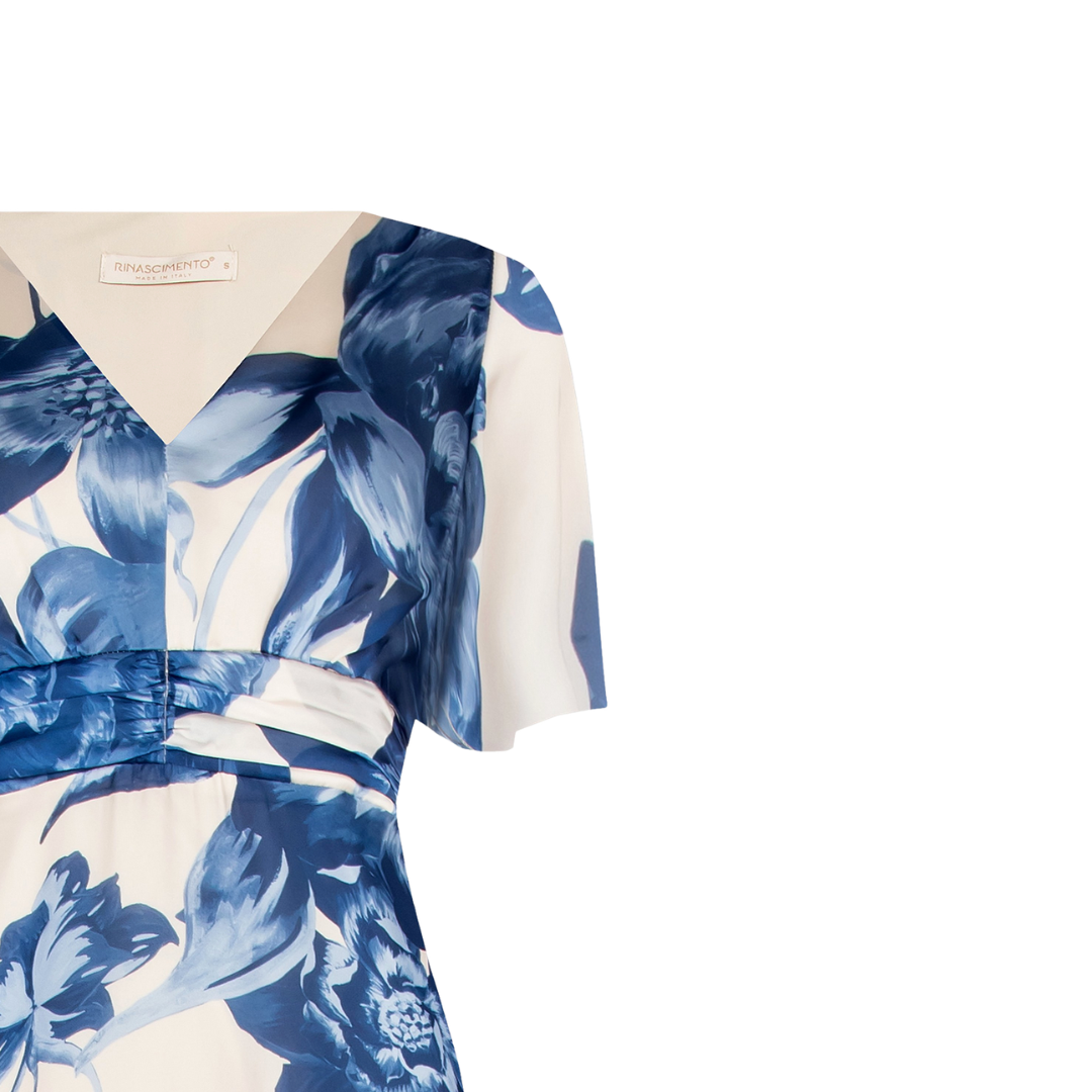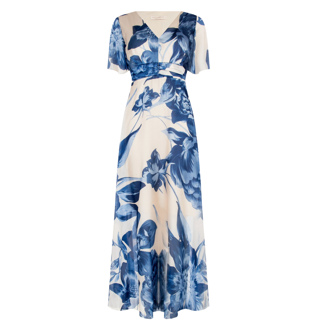langes Satinkleid im Blumenmuster