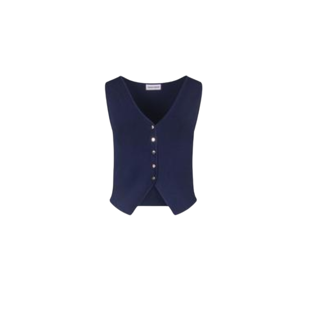 Elegante Strickweste Damen dunkelblau – Minimalistische Boutique Vest