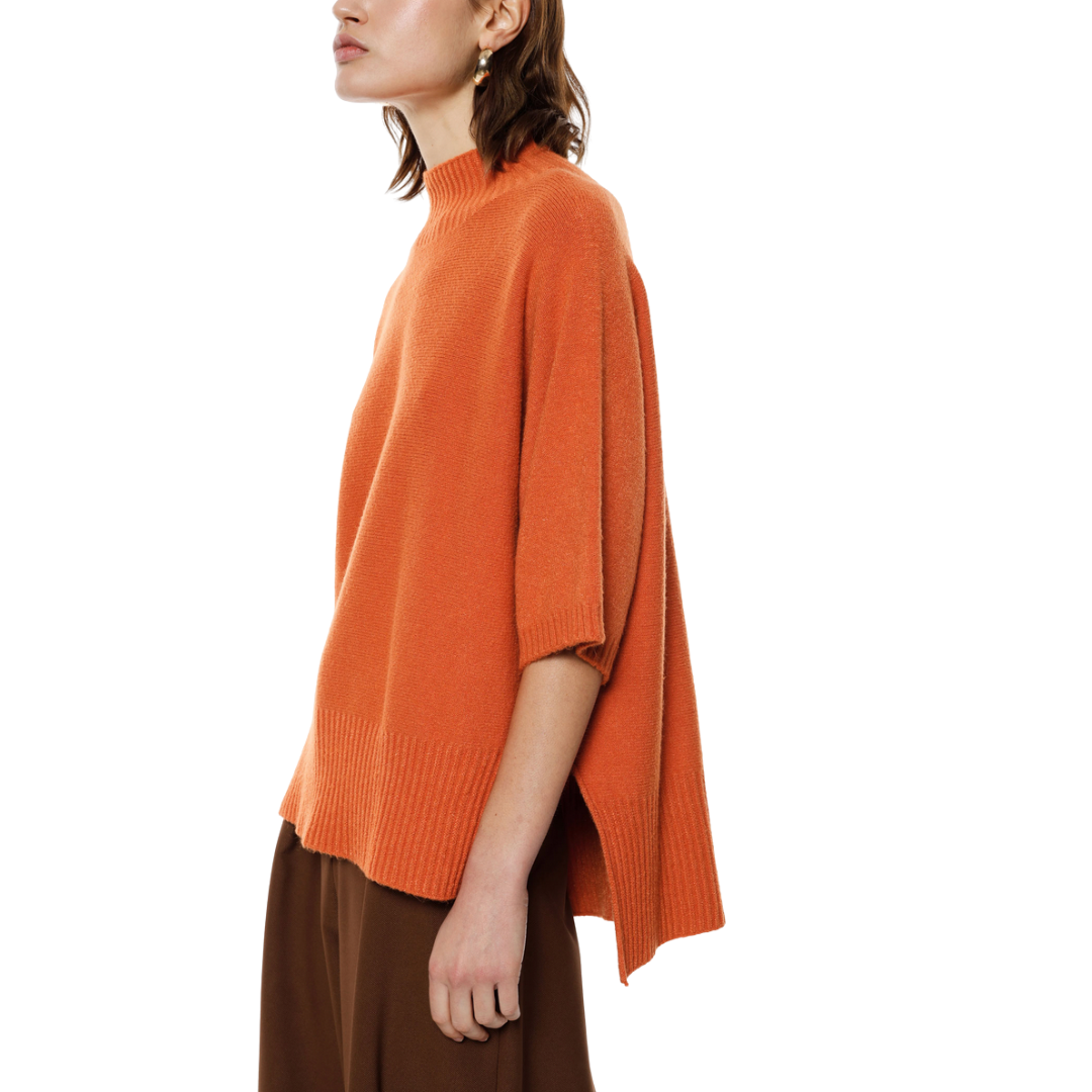 Dieser elegante Pullover mit Stehkragen verbindet Komfort und modernen Style. Das weiche Material schmiegt sich angenehm an die Haut, während der klassische Stehkragen für eine raffinierte Silhouette sorgt. Die seitlichen Schlitze ermöglichen mehr Bewegungsfreiheit, und die verlängerte Rückenlänge schmeichelt der Figur. Ein vielseitiges Lieblingsstück für jeden Tag – perfekt zu Jeans oder eleganten Hosen.