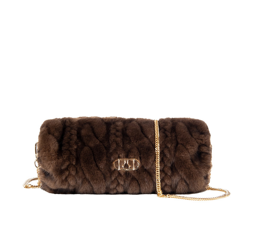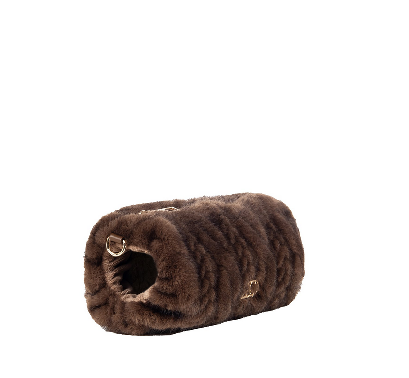 Cylinder Bag and Hand Warmer in Faux Fur with Chain Strap