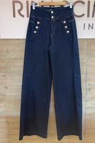 Diese stylische Jeans in ultra dunkler Waschung verfügt über einen angesagten Palazzo-Schnitt und goldene Knöpfe.