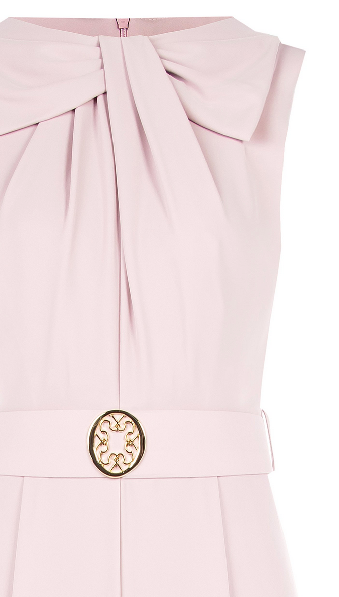 Dieser elegante Overall besticht durch eine raffinierte Masche am Dekolleté, die dem Outfit eine feminine Note verleiht. Das weite Bein sorgt für einen fließenden, komfortablen Sitz und unterstreicht die stilvolle Silhouette. Ideal für besondere Anlässe, verbindet dieses Modell Komfort mit zeitloser Eleganz.
