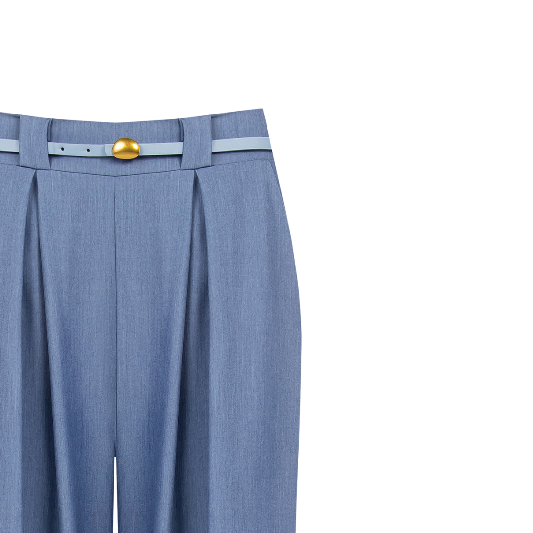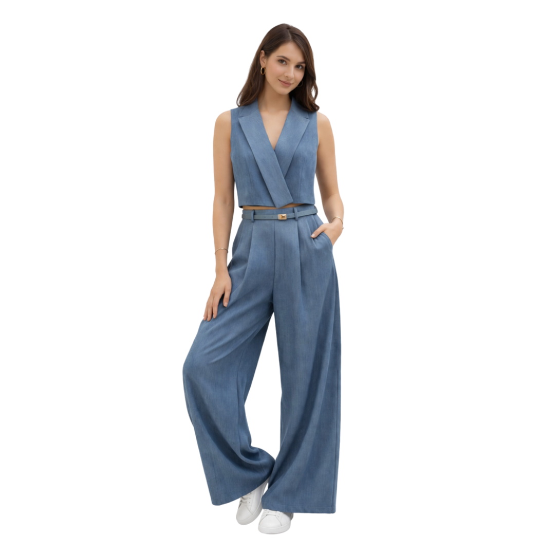 Klassische Wide-Leg-Denim-Hose mit schmalem Gürtel für einen modernen, lässigen Look. Das zeitlose Design passt perfekt zu verschiedenen Oberteilen und lässt sich mühelos kombinieren. Der schmale Gürtel betont die Taille und sorgt für eine elegante Silhouette. Ideal für jeden Tag – ob casual oder smart casual. Passendes Denim Gilet