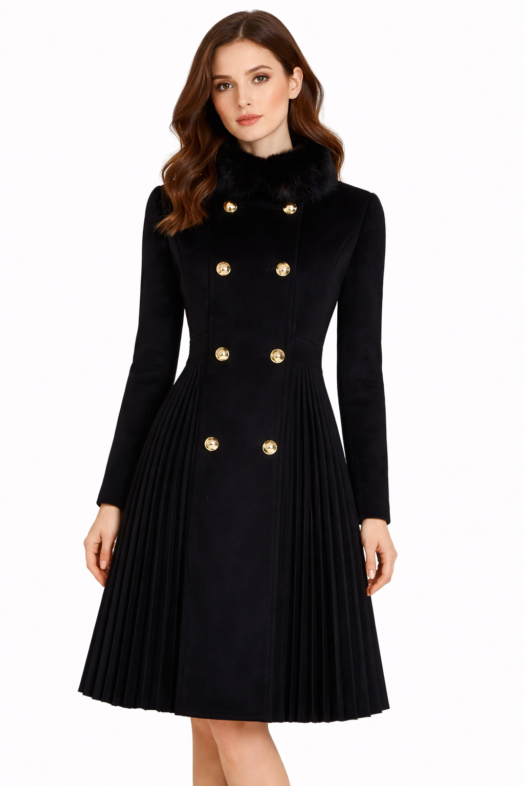 Plisseemantel mit Pelzkragen
