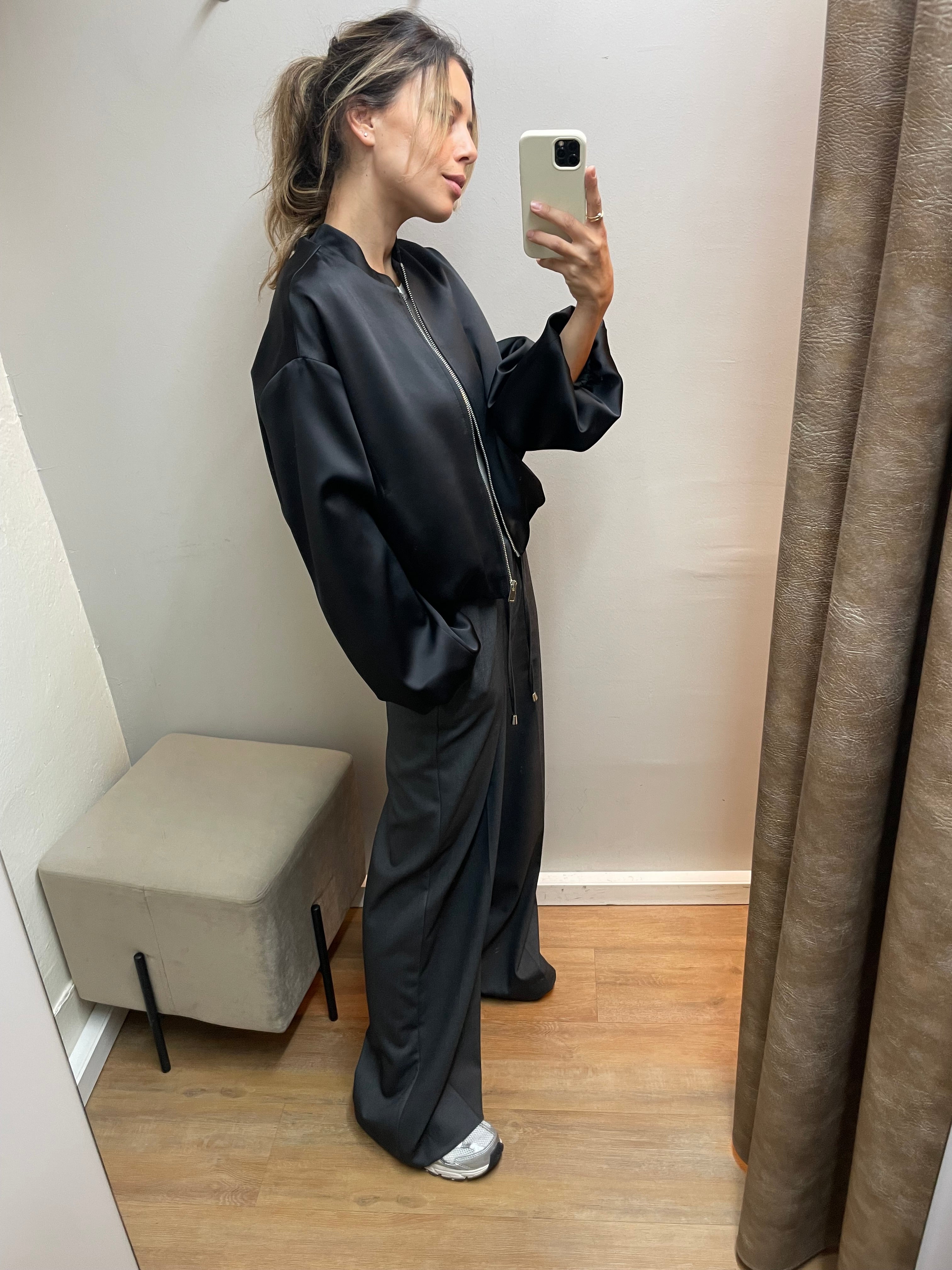 Diese lässige Bomberjacke in Satinoptik überzeugt mit ihrem weiten Ärmel und sorgt für einen entspannten, modischen Look. Der schimmernde Satinstoff verleiht Ihrem Outfit einen eleganten Touch, während die lockere Passform hohen Komfort garantiert. Ideal für stylische Alltagsshirts oder als Eyecatcher zu jedem Casual-Style.