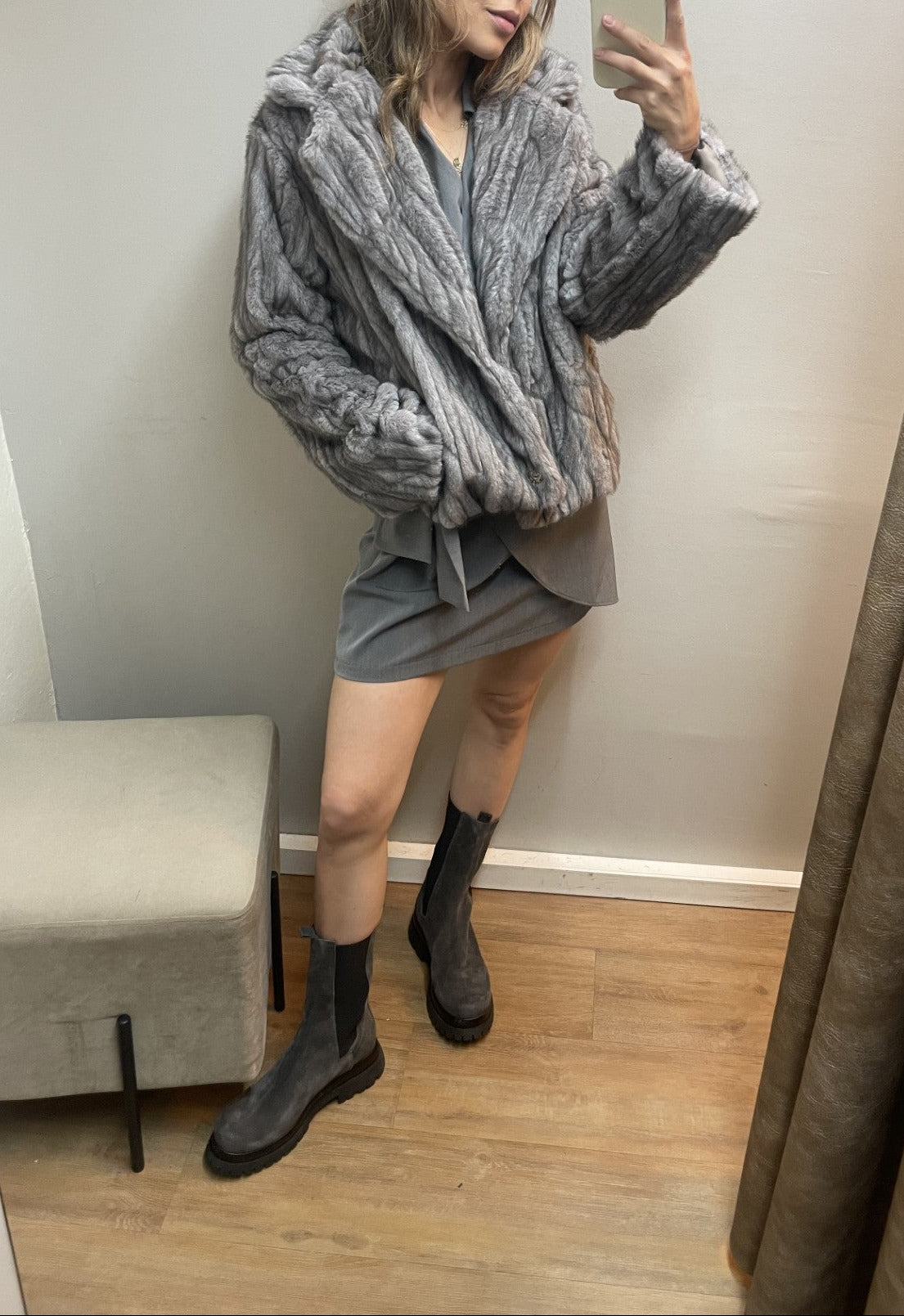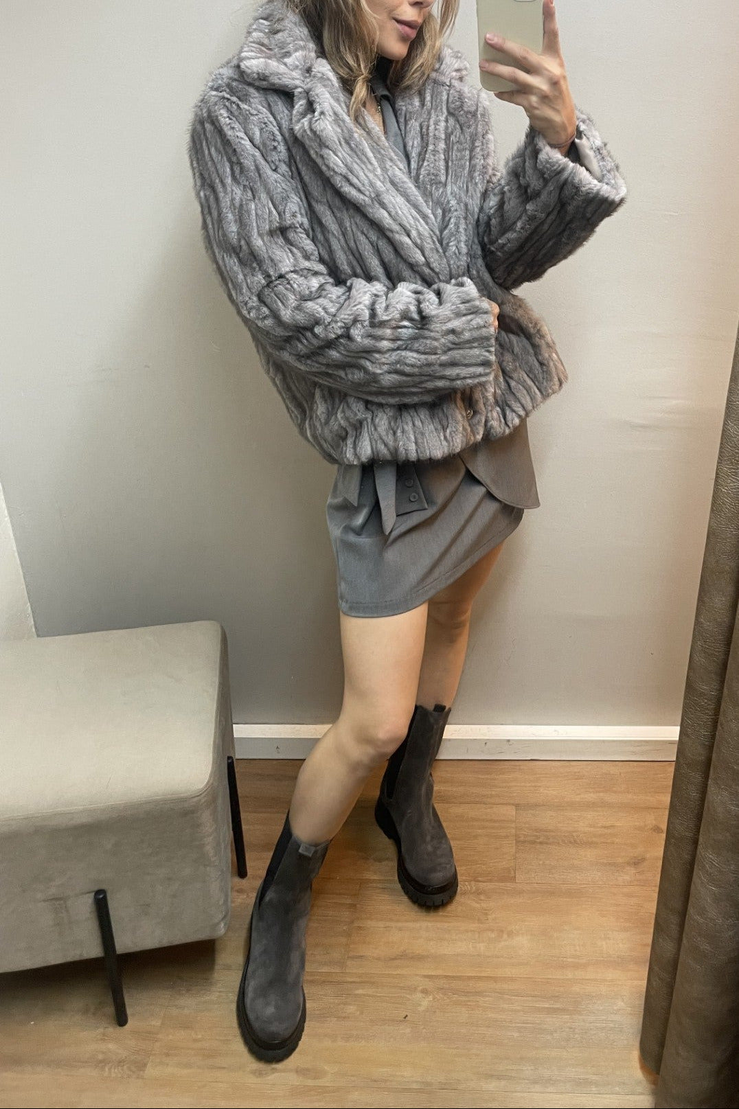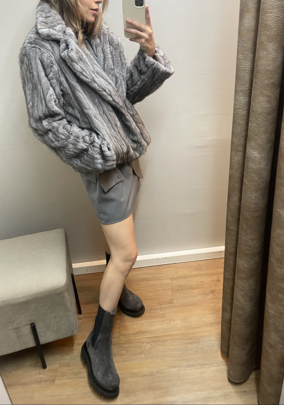 Diese wunderschöne Fake Fur Jacke in warmem Schokobraun verbindet Stil und Komfort auf perfekte Weise. Das besonders weiche Material fühlt sich angenehm auf der Haut an und sorgt für wohlige Wärme an kühlen Tagen. Ein zeitloses Highlight, das Ihrem Look eine elegante Note verleiht und sich mühelos zu verschiedenen Outfits kombinieren lässt. Ideal für alle, die nachhaltige Mode mit luxuriösem Tragekomfort schätzen.