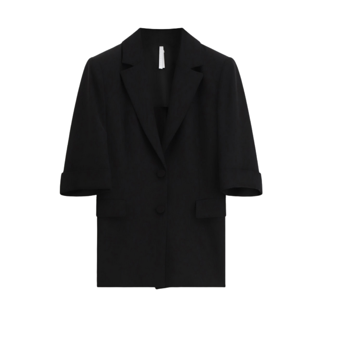 Dieser lässige Kurzarm-Blazer besticht durch seine unkomplizierte Eleganz und Vielseitigkeit. Das leichte Design eignet sich perfekt für warme Tage und lässt sich mühelos kombinieren – ob zu Jeans für einen entspannten Look oder zur passenden Hose für einen durchdachten Business-Casual-Auftritt. Die kurzen Ärmel bieten maximale Bewegungsfreiheit, während die strukturierte Passform eine moderne Silhouette schafft. Ein zeitloser Klassiker, der in keinem Kleiderschrank fehlen sollte und sich problemlos mit verschiedenen Outfits abstimmen lässt.