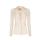 Der Einknopf Blazer beeindruckt durch seinen klaren Schnitt und das angenehme Tragegefühl. Mit einem praktischen Knopfverschluss und stilvollen angetäuschten Taschen vereint er Eleganz und Komfort. Perfekt für einen professionellen Look, der gleichzeitig entspannt wirkt. Kombinierbar mit unserer crepe Hose in schmal oder weiten crepe Hose Rinascimento