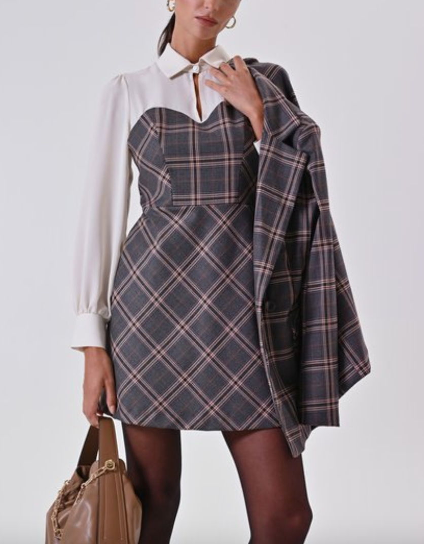Dieses karierte Blusenkleid verbindet zeitlose Eleganz mit modernem Komfort. Der klassische Karomuster sorgt für einen stilvollen Auftritt, während der lockere Schnitt Bewegungsfreiheit bietet. Perfekt für Büro, Alltag oder besondere Anlässe – setzen Sie ein modisches Statement mit diesem vielseitigen Kleidungsstück, das Ihre Garderobe ideal ergänzt.