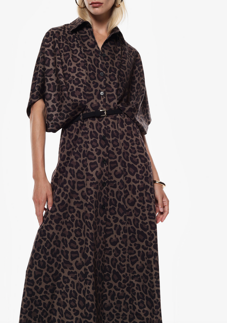 Dieses Leo Kleid mit Gürtel und Ärmel kombiniert auffälliges Muster mit einer schmeichelhaften Silhouette. Der Taillengürtel betont Ihre Figur, während die Ärmel für eleganten Halt sorgen. Perfekt für selbstbewusste Auftritte, die Komfort und Stil vereinen.