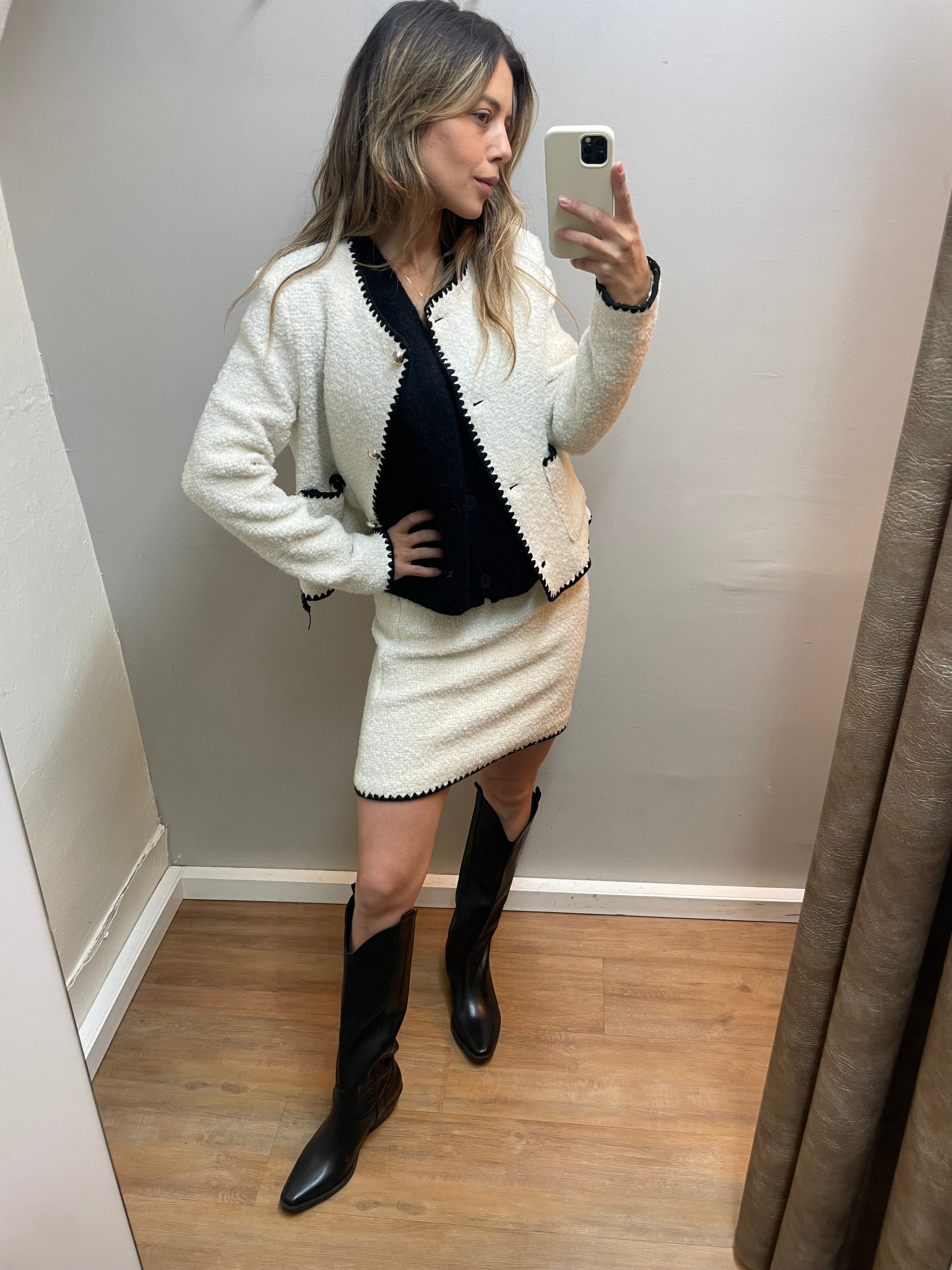 Dieses Set aus Minirock und passendem Blazer vereint eleganten Stil mit moderner Vielseitigkeit. Der Minirock betont deine Silhouette, während der Blazer für eine souveräne und abgestimmte Optik sorgt. Ideal für Büro, Treffen oder elegante Anlässe – mit diesem Duo bist du immer perfekt gekleidet. Einfach kombinieren und selbstbewusst auftreten.