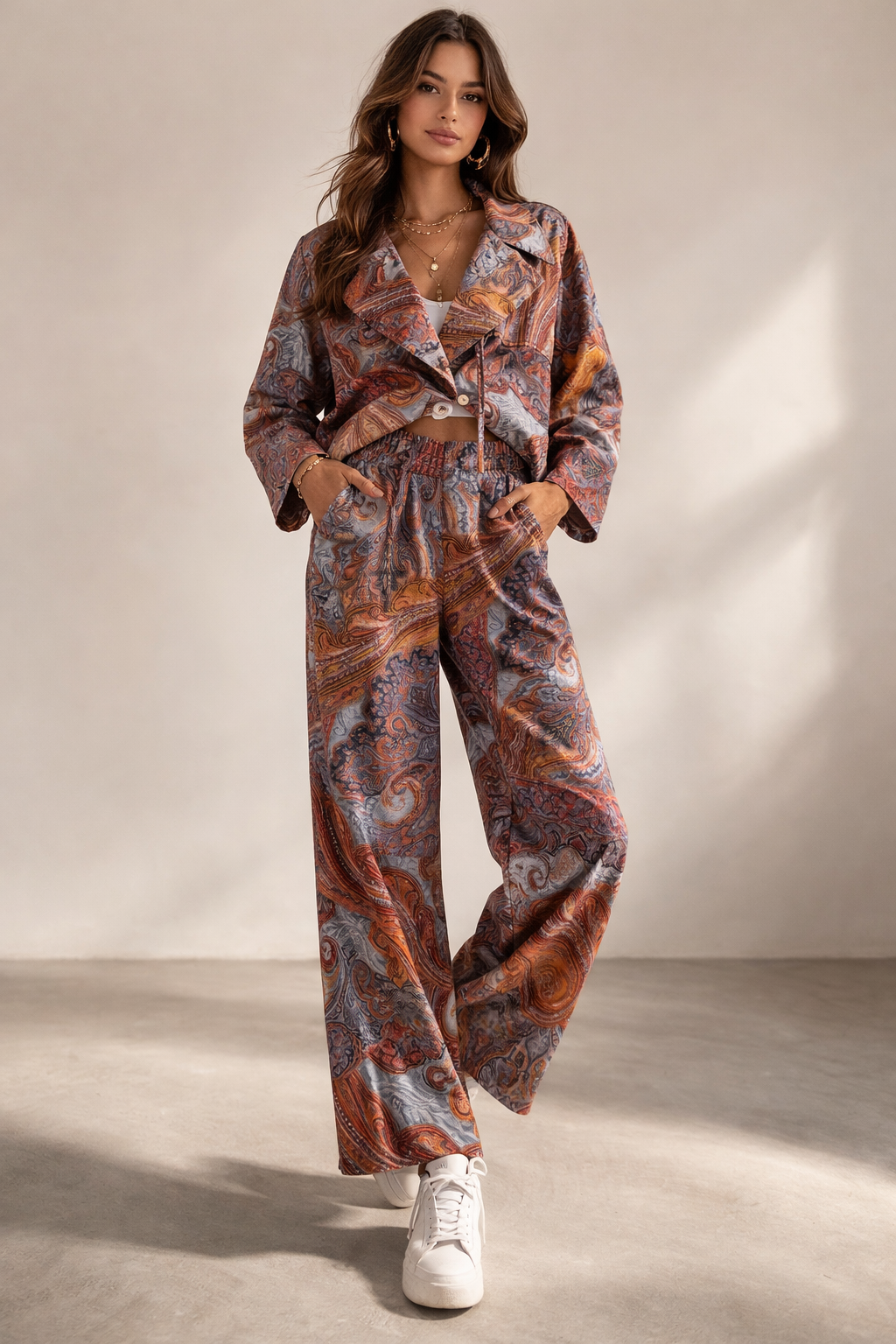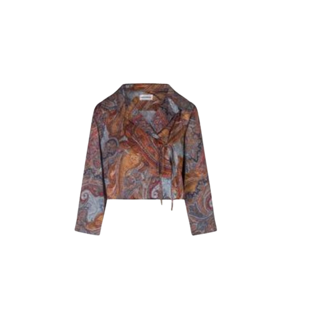 Elegante Paisley-Bluse mit klassischem Kragen und seitlichen Bindebändern für eine individuelle Passform. Das zeitlose Paisley-Muster verleiht dieser Bluse Charakter und Vielseitigkeit.