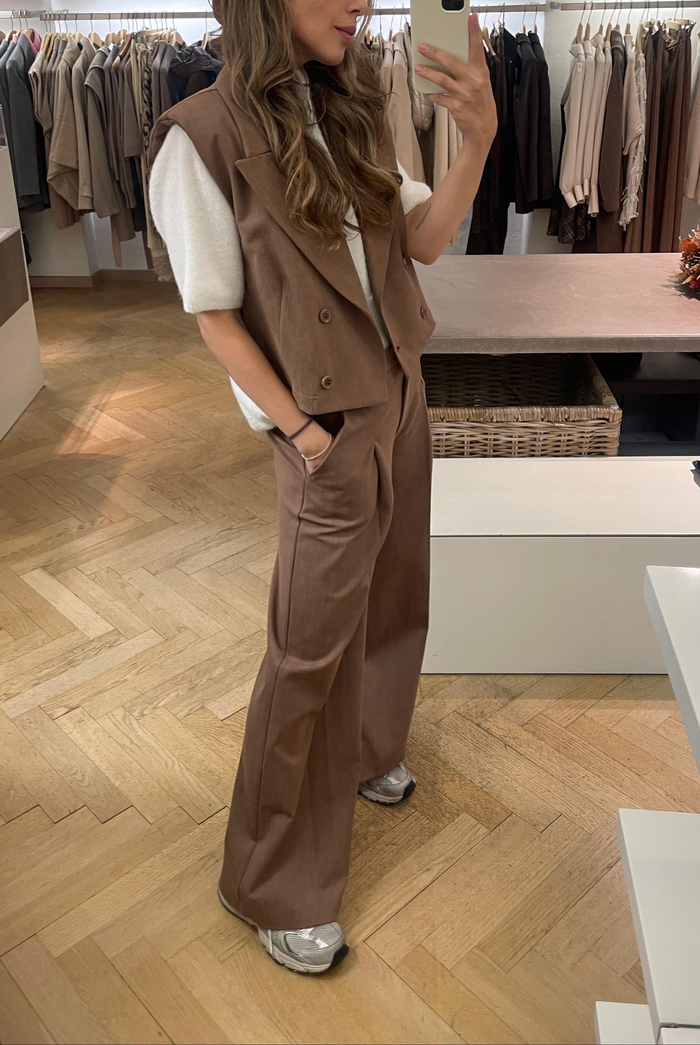 Entdecke unsere Kastige Weste – das perfekte Layering-Piece für deinen modernen Alltag. Mit ihrer strukturierten Silhouette und zeitlosen Schnittführung verleiht sie jedem Outfit sofort mehr Charakter und Tiefe. Ob zu Jeans, Kleidern oder eleganten Hosen – diese vielseitige Weste passt zu deinem persönlichen Stil. Hochwertige Verarbeitung und komfortable Passform machen sie zum unverzichtbaren Begleiter für Frühling, Herbst und Winter.