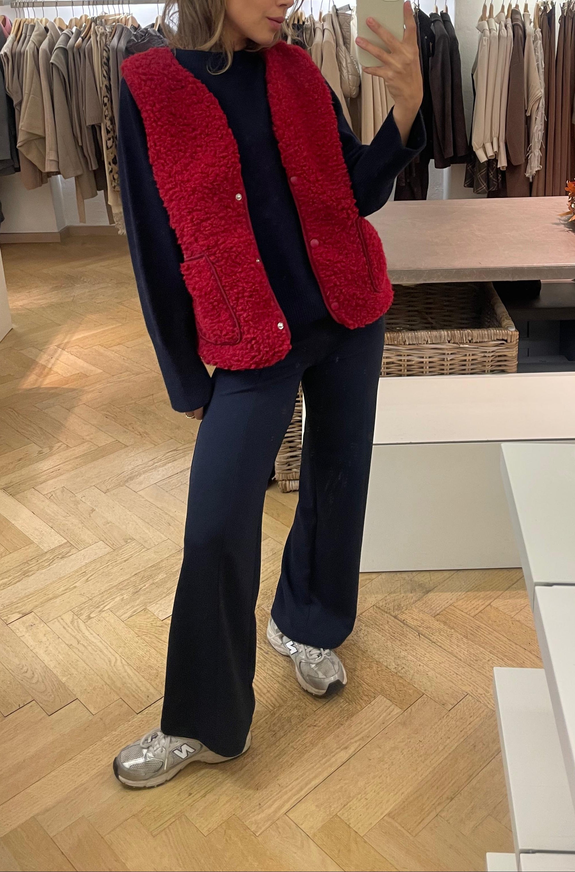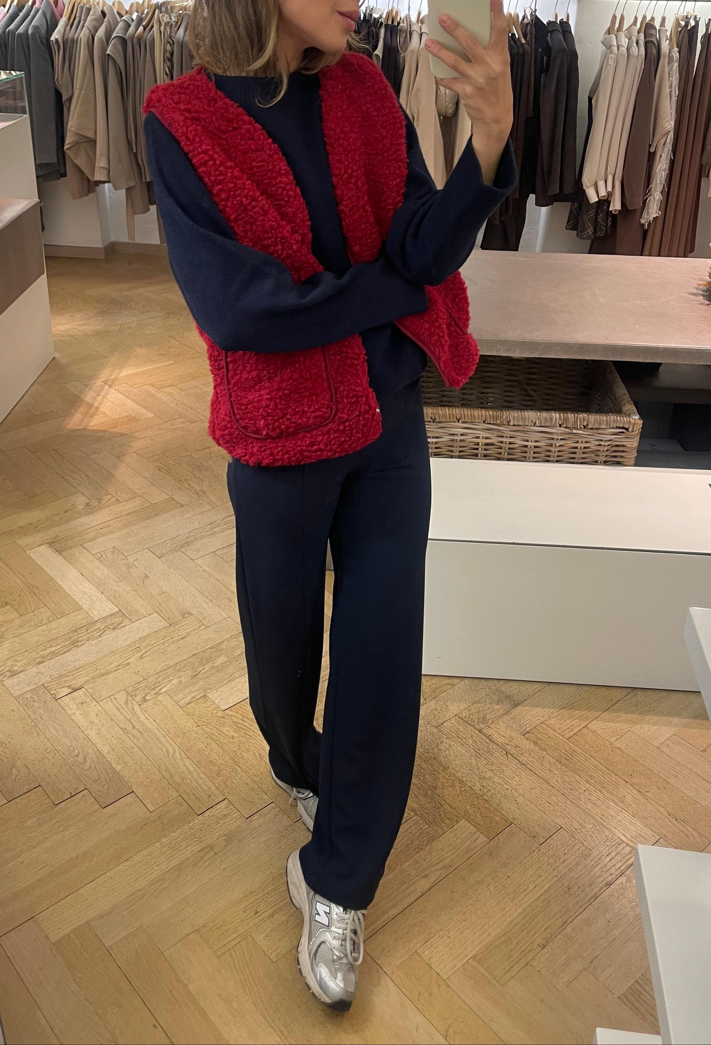 Kuschelig weich und zeitlos elegant – unsere Teddy Weste in leuchtendem Rot ist das perfekte Layering-Piece für jeden Stil. Ob über einem Shirt oder Kleid – diese Statement-Weste verleiht deinem Look sofort Wärme und Charakter.