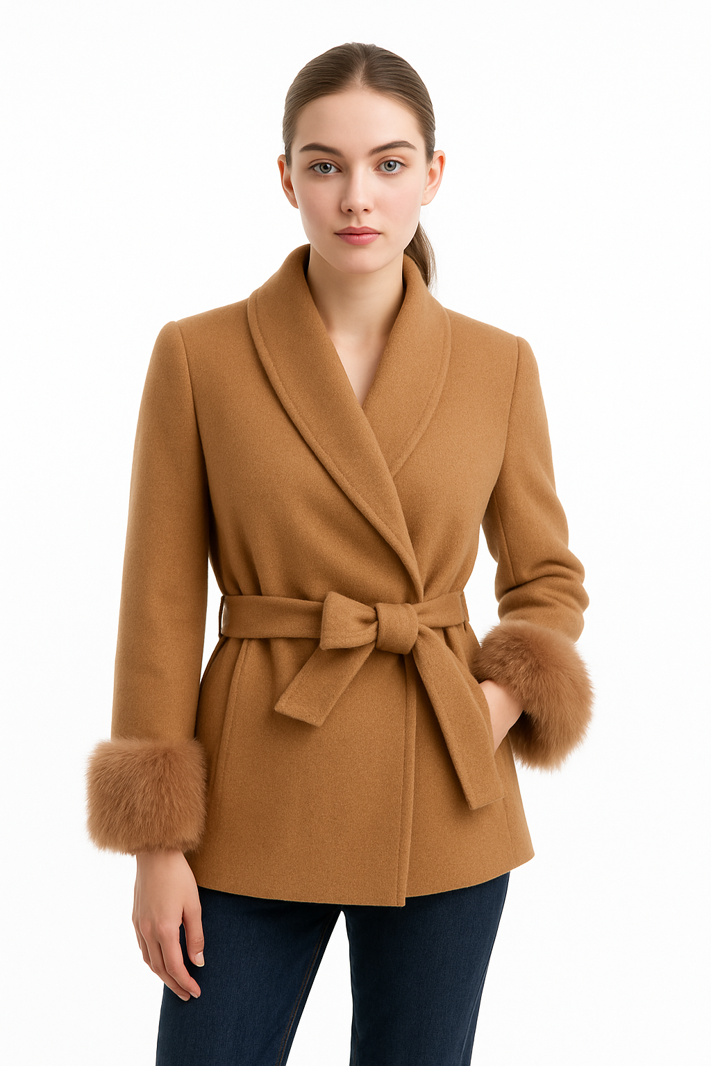 Dieser stilvolle Kurzmantel überzeugt mit einem modernen Look und weichem Fake Fur an den Ärmeln, der für einen modischen Akzent sorgt. Er bietet angenehme Wärme und Komfort, ideal für den Alltag und besondere Anlässe. Setzen Sie auf tierfreundliche Eleganz ohne Kompromisse bei Design und Funktionalität.