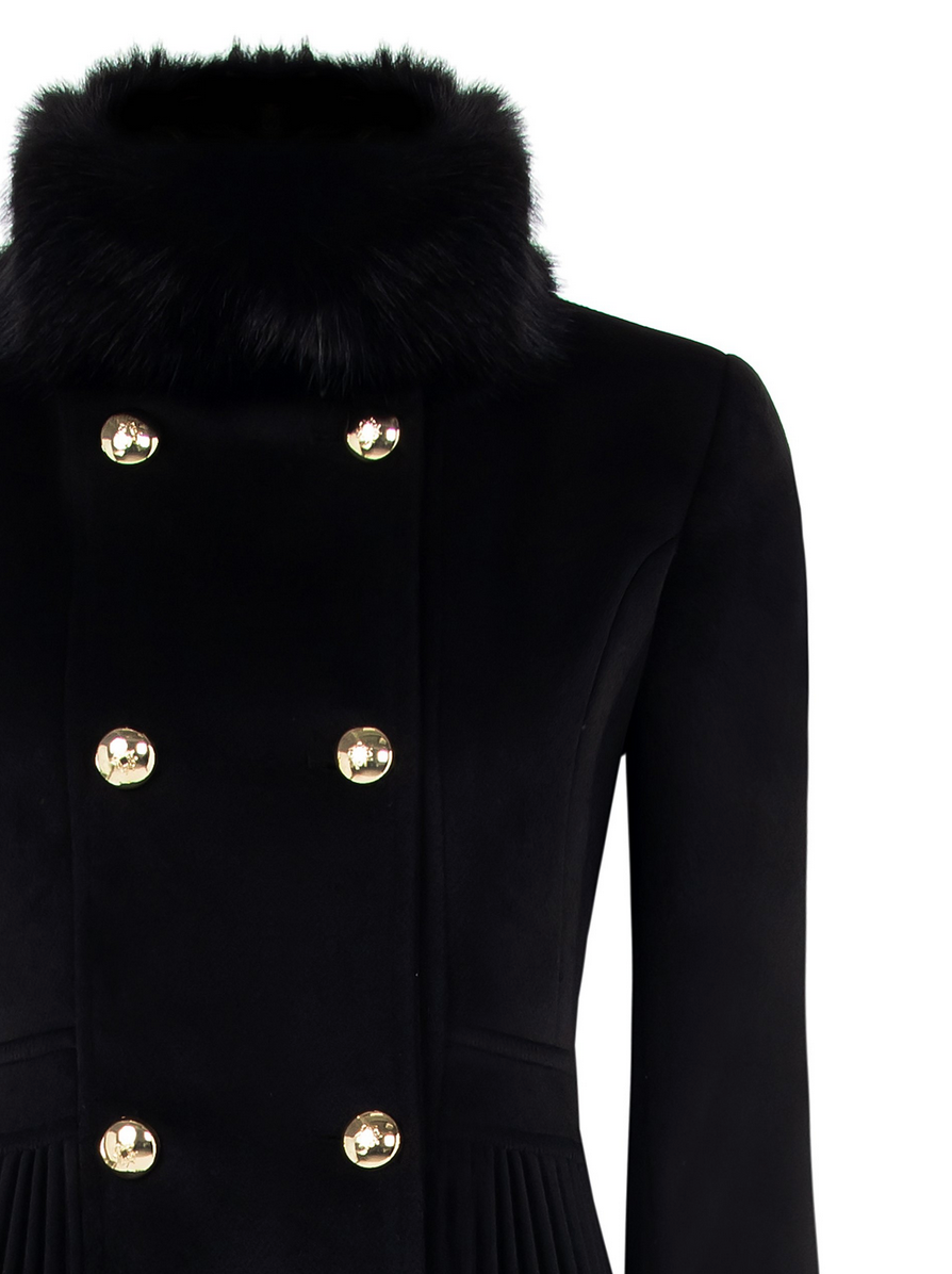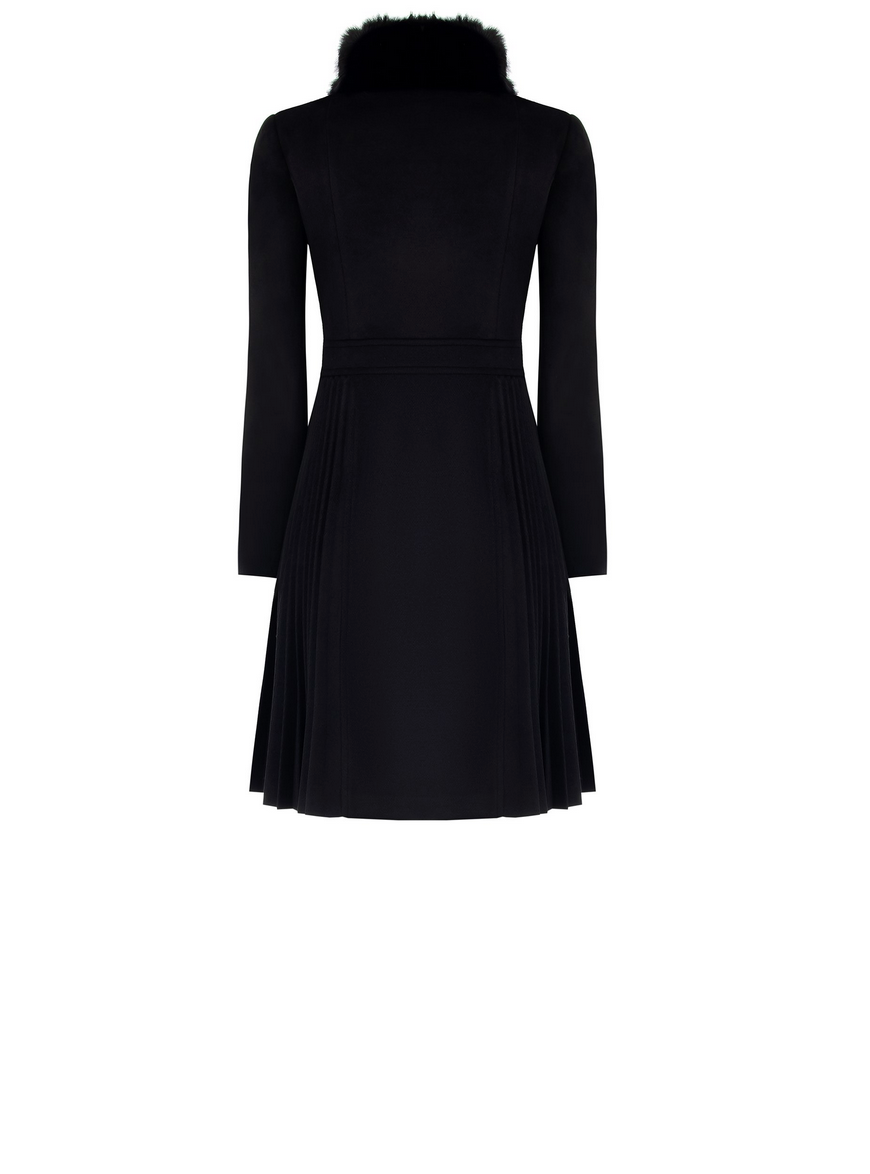 Dieser elegante Plisseemantel mit kuscheligem Fake-Fur Pelzkragen verbindet modernen Stil mit angenehmem Tragekomfort. Die feinen Falten schaffen eine fließende Silhouette, während der weich gearbeitete Kragen zusätzlichen Schutz vor Kälte bietet. Ein modisches Must-have, das Ihren Look besonders und gleichzeitig warm hält – ideal für kühle Tage und stilbewusste Auftritte.