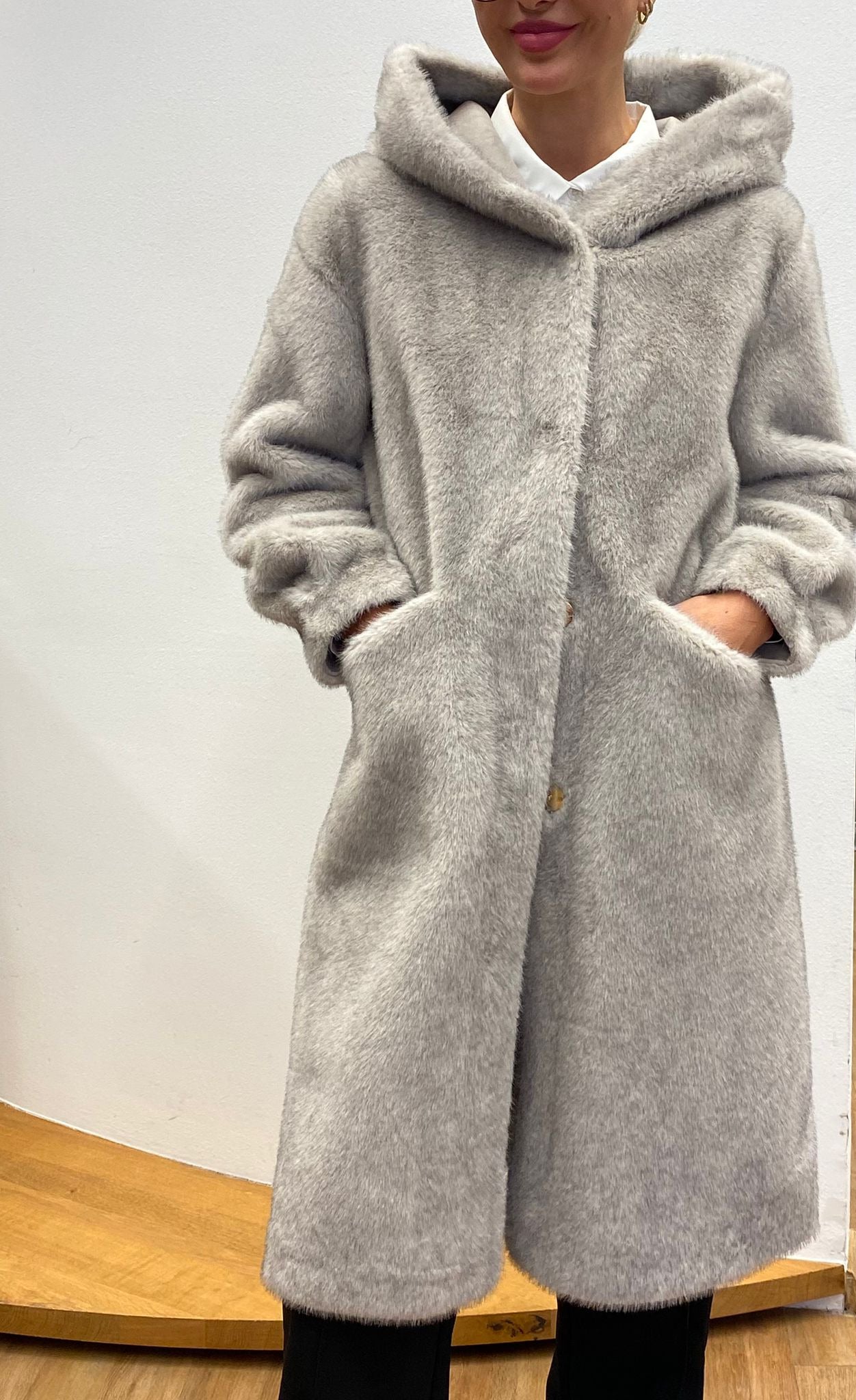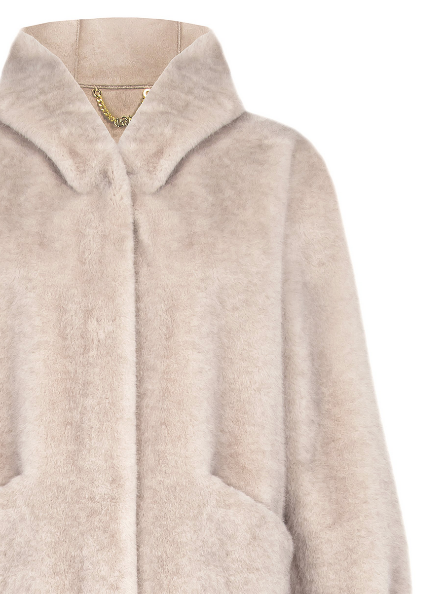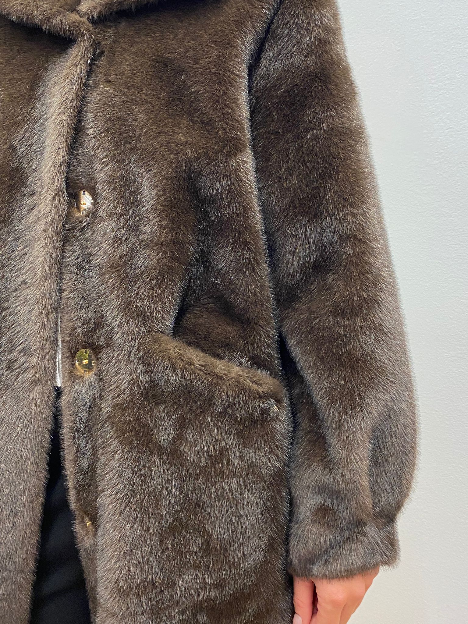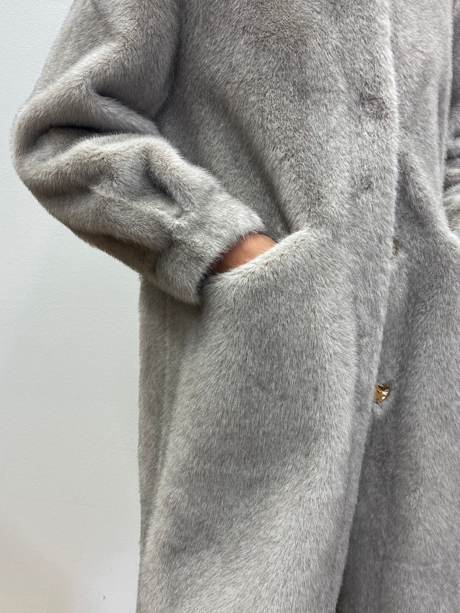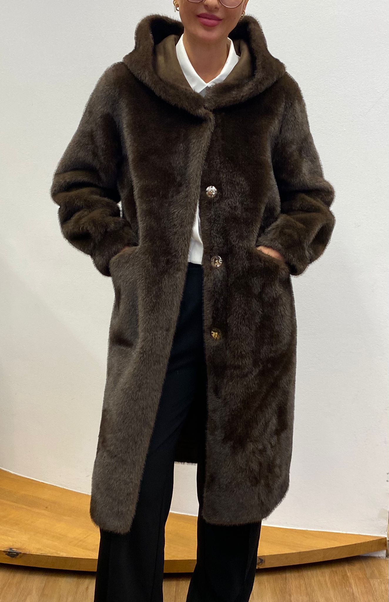 Dieser luxuriöse vegane Pelzmantel bietet unvergleichliche Gemütlichkeit ohne Tierleid. Das hochwertige Kunstfell fühlt sich samtig weich an und schmeichelt der Haut, während es gleichzeitig eine elegante Silhouette schafft. Perfekt für kalte Tage – der ideale Begleiter für stilbewusste und ethisch verantwortungsvolle Fashionistas. Warm, kuschelig und mit gutem Gewissen zu tragen.