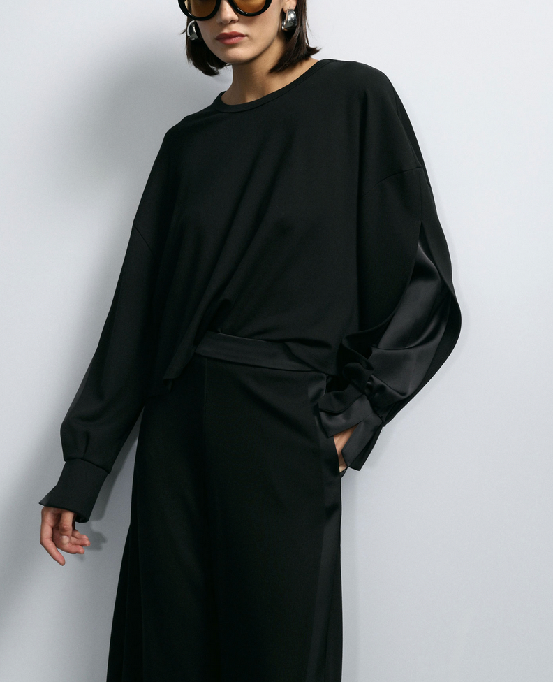 Jersey Shirt mit Ledereinsatz – das perfekte Stück für deinen modernen Alltag. Das weiche Jersey-Material bietet maximalen Komfort und Bewegungsfreiheit, während die eleganten Ledereinsätze dem Design eine raffinierte Note verleihen. Ideal für vielseitige Styling-Möglichkeiten – kombinierbar zu Jeans, Blazer oder Layering-Looks.