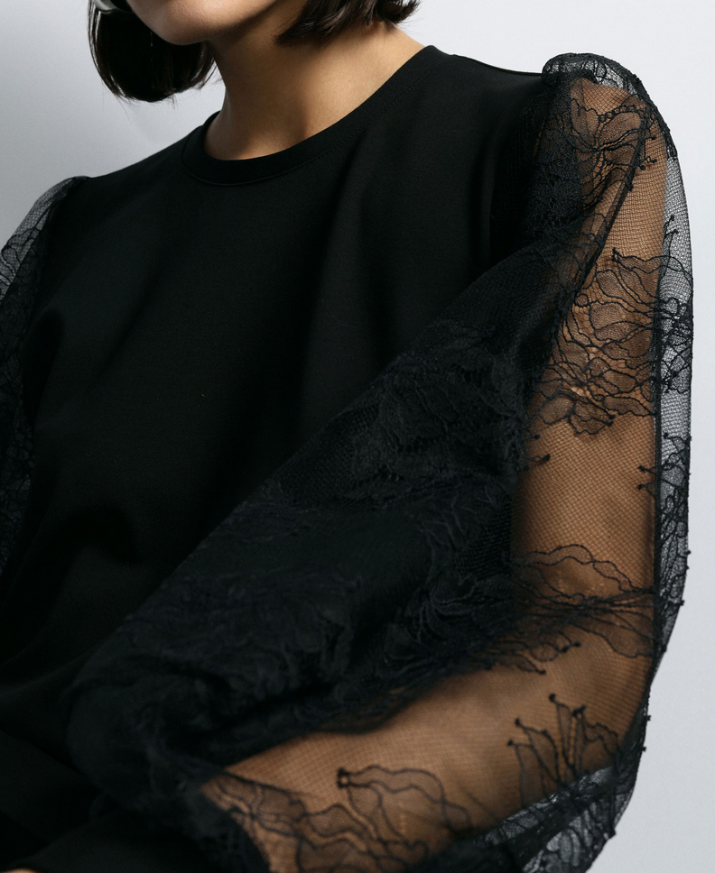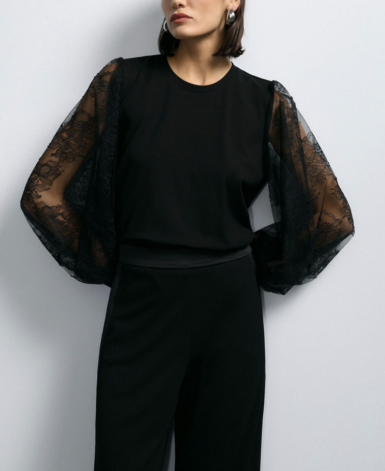 Entdecke das perfekte Jerseyshirt mit eleganten Spitzenärmeln – eine harmonische Mischung aus Komfort und Raffinesse. Das weiche Jersey-Material schmiegt sich angenehm an deinen Körper, während die zarten Spitzeneinsätze an den Ärmeln einen Hauch von Feminität verleihen. Ideal für vielseitige Styling-Möglichkeiten: vom lockeren Alltags-Look bis zum eleganten Abend-Outfit. Das zeitlose Design macht dieses Shirt zu einem Must-Have in deiner Garderobe, das dich in jeder Situation selbstbewusst und wunderschön aussehen lässt.