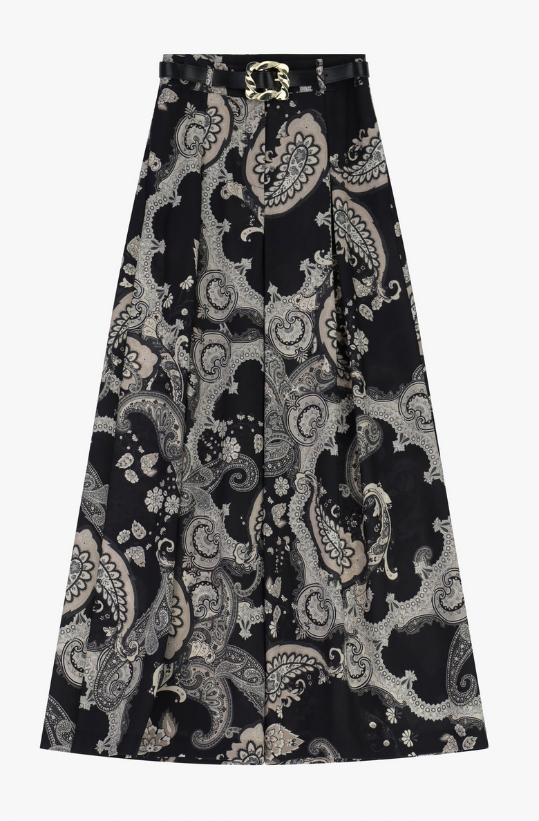 Diese gemusterte, weit geschnittene Hose verbindet Komfort mit Stil und setzt durch das auffällige Muster modische Akzente. Der praktische Gürtel betont die Taille und sorgt für eine perfekte Passform. Ideal für entspannte Tage oder lässige Outfits, bietet sie Bewegungsfreiheit und vielseitige Kombinationsmöglichkeiten. Ein Must-have, das Eleganz und Bequemlichkeit mühelos vereint.